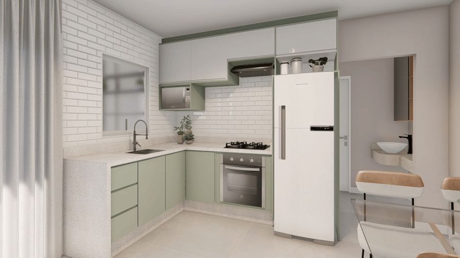 Com 2 opções de plantas: de 43m² sem súite e de 46m² com súite.